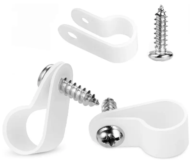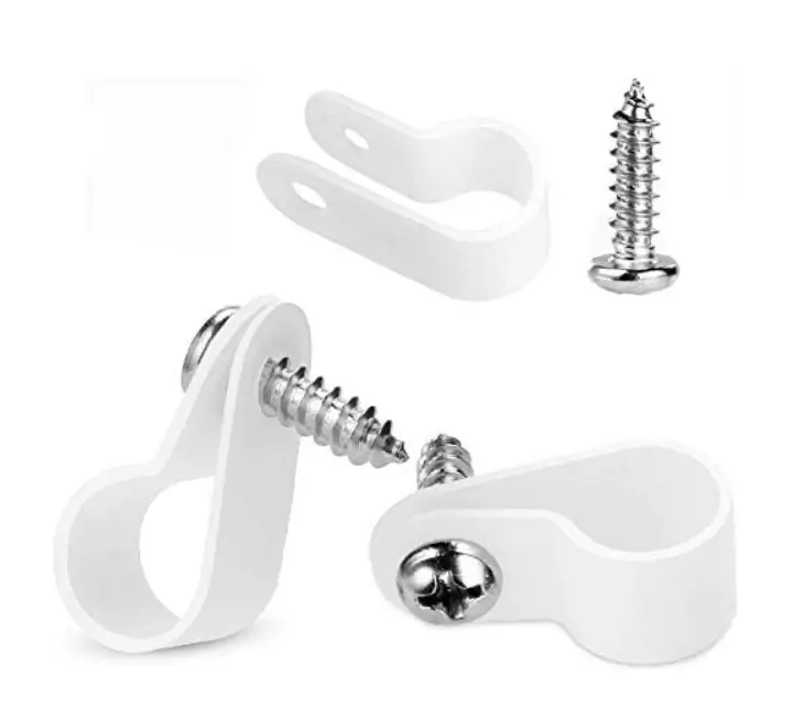 LOKMAN 50 Pack 1/2 Inch Rope Light P-Style Mounting Clips with Compatible Stainless Steel Pan Head Phillips Screws White