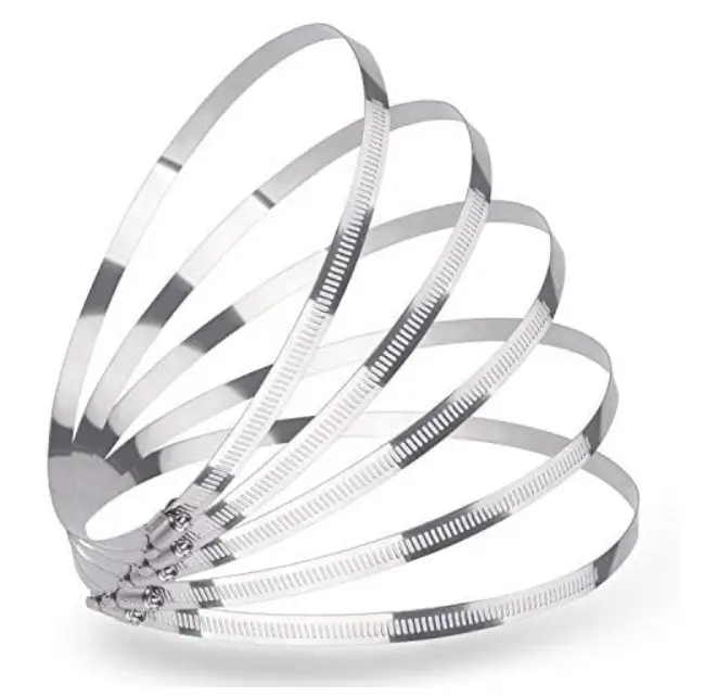 The LOKMAN 5 Pack 10 inch stainless steel hose clamps is designed for securing large hoses, pipes, and dryer vent ducts with confidence. Each clamp features a worm gear mechanism that allows smooth adjustment from 9 to 10 inches for a precise and secure fit. Made from corrosion-resistant stainless steel, these clamps are suitable for both indoor and outdoor applications. Ideal for dryer vents, fuel lines, and large-diameter hoses, they provide strong holding power and long-lasting reliability